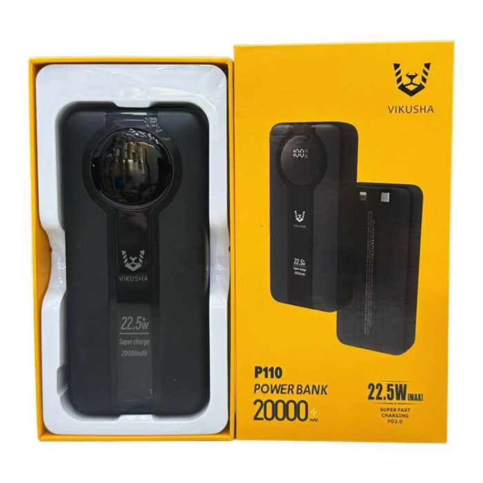 پاوربانک VIKUSHA P110 یک پاوربانک قدرتمند و قابلاعتماد با ظرفیت واقعی بالا (20000mAh اسمی)، مناسب برای سفرها، استفاده طولانیمدت و شارژ چند دستگاه بهصورت همزمان. پشتیبانی از شارژ سریع تا 22.5W (PD 2.0) تجربه شارژ سریع و ایمن را فراهم میکند.
